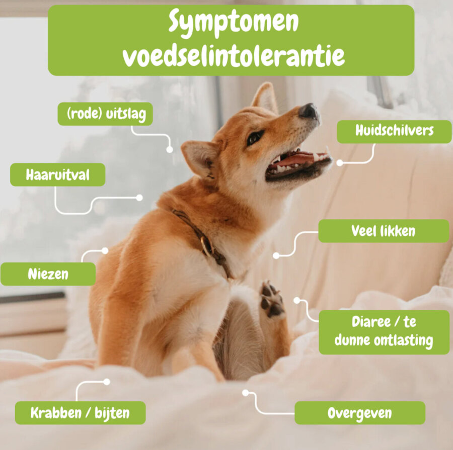 "Meten = weten". Heeft je hond een probleem welke waarschijnlijk voedsel gerelateerd is? Dan kan je twee dingen doen. 1. Een eliminatiedieet gaan volgen of 2. "meten". Het volgen van een eliminatie dieet kan zeer effectief zijn en ook snel resultaat opleveren maar helaas is dat lang niet altijd het geval. De reden is dat er met een eliminatiedieet vaak alleen getest wordt op dierlijk eiwit. Dat werkt zoals geschreven ook soms maar je hond kan ook een voedselintolerantie hebben voor vis, fruit en groenten wat in de meeste soorten goed hondenvoer ook aanwezig is. Test je met een eliminatiedieet enkel op dierlijk eiwit dan kan het zomaar zijn dat je voor niets aan het testen bent. Zonde van de tijd, het geld (veel zakken hondenvoer) en natuurlijk niet fijn voor je hond.