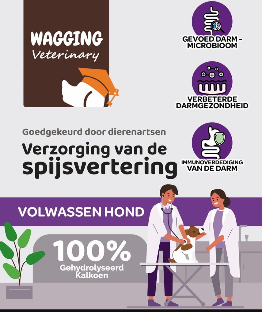 Bestel nu Wagging Veterinary Spijsverteringszorg en geef jouw hond de beste ondersteuning voor een gezonde spijsvertering!