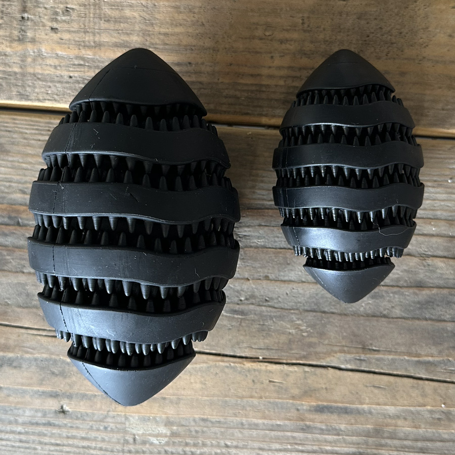 De Fortistoys Rugby combineert kracht, uitdaging en speelplezier in een unieke rugbyvorm. Gemaakt van sterk rubber en voorzien van een ribbelstructuur (als tanden) waar je kleine snacks of brokjes tussen kunt stoppen. Hierdoor is dit speeltje niet alleen ideaal om mee te spelen, maar daagt het je hond ook mentaal uit.