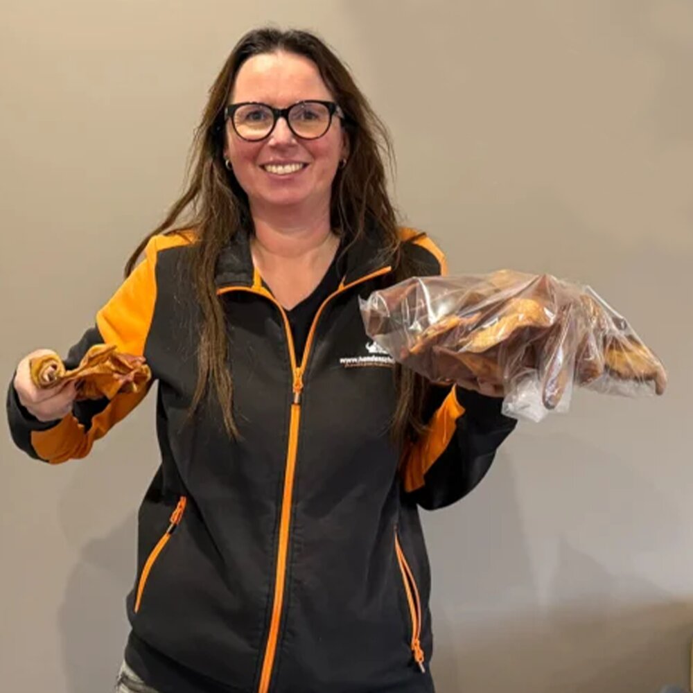 Zonder toevoeging van geur, kleur- en smaakstoffen spreken we van een verantwoorde kauwsnack. En dan zijn de varkensoren ook nog eens graan- en glutenvrij.