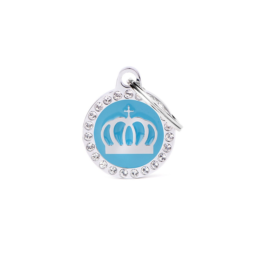 De Glam Light Blue Crown met strass-steentjes hondenpenning kunnen we aan één kant (gratis) graveren