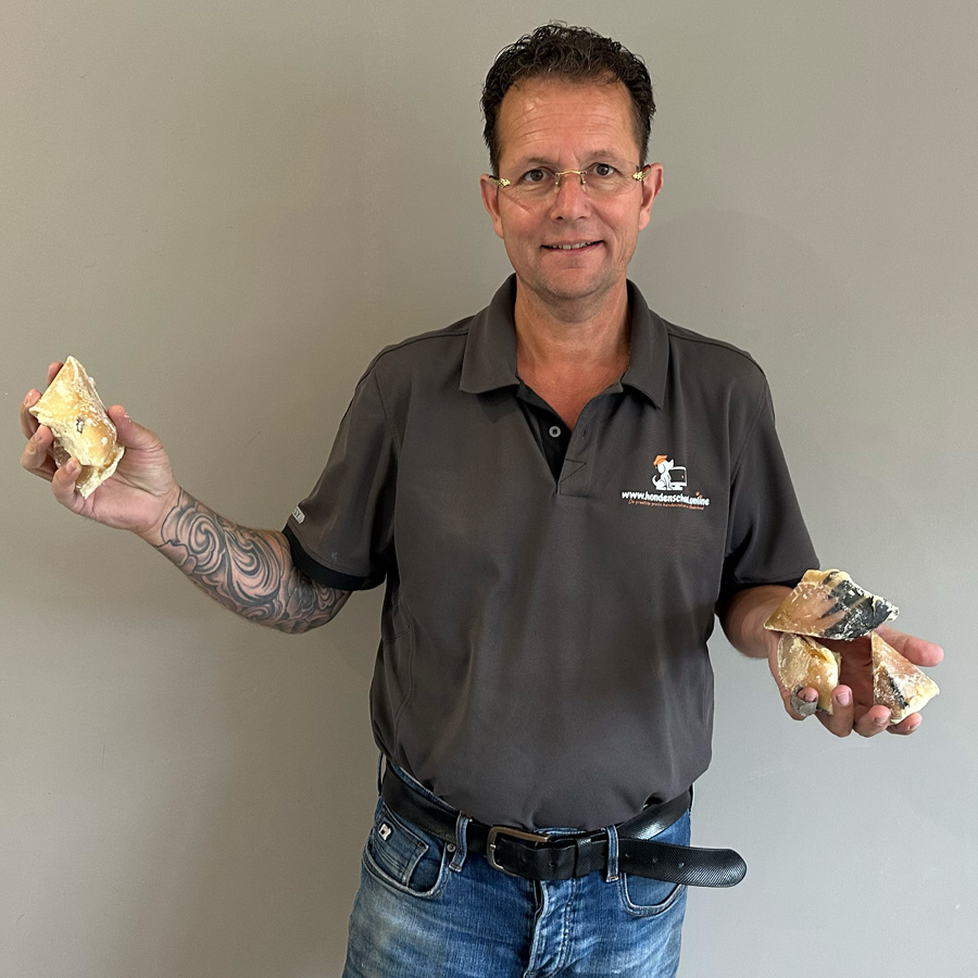 Onze Hoefjes gevuld met Schapenvet worden met zorg geselecteerd en gecontroleerd. Edwin – onze vaste inkoper – bezoekt elke maandag persoonlijk de drogerij om de kwaliteit te controleren. Zo ben je verzekerd van een verantwoord natuurproduct dat veilig en gezond is voor jouw hond. Let op: als natuurproduct kunnen de hoefjes variëren in vorm, kleur en formaat – de foto's zijn puur ter illustratie.
