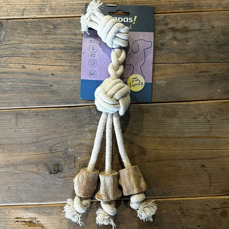 artikelnummer: Triple knot tug toy Coffeewood quapas categorie: Tag: ,