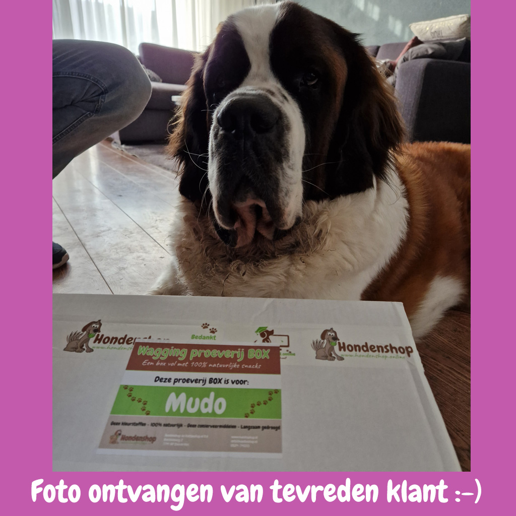 ***LET OP*** Zoals onze vaste klanten weten leveren we uitsluitend de beste kwaliteit en worden alle gedroogde snacks en botten speciaal door Edwin geselecteerd. Om die reden kunnen we de proeverij boxen voor de hond niet altijd maken. Zeker in de tijd van hoge energie kosten zie je dat sommige drogerijen de hondensnacks minder lang drogen of op een veel hogere temperatuur korter drogen. Wij willen dat niet! Wij willen enkel gedroogde snacks van de beste kwaliteit. Het kan zijn dat we de Wagging proeverij BOX tijdelijk niet kunnen leveren. Hoewel we dat niet leuk vinden is dat in onze ogen nog altijd beter dan slechte kwaliteit verkopen. Dank voor je begrip!