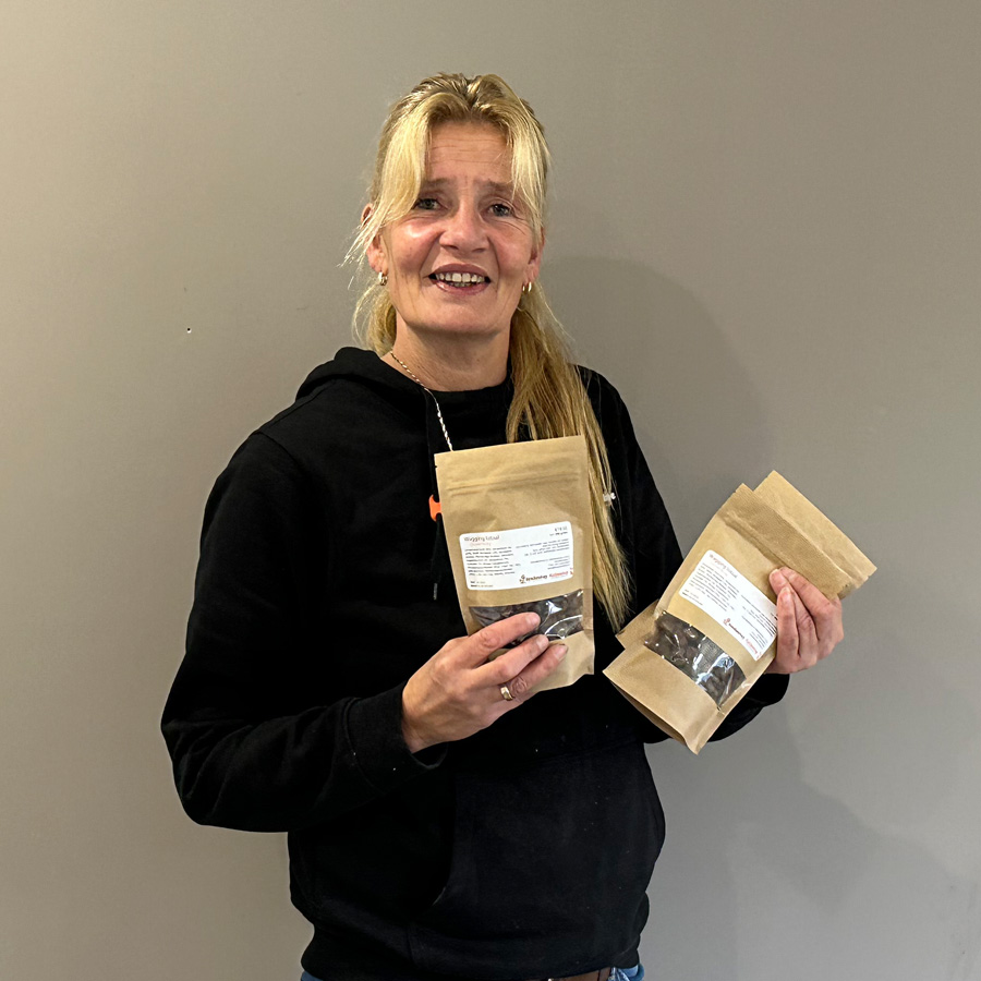Wagging spijsvertering totaal snack is een premium kauwsnack ter ondersteuning van de spijsvertering. Heel veel mensen hebben problemen met het geven van tabletten, poeder of pillen met probiotica daar wilde we een oplossing voor bedenken. Nadat we in gesprek waren met de fabriek waar we onze beloningssnoepjes maken bleek dat het vrij ingewikkeld is om van een beloningssnoepje een supplement te maken met naast functionele bestanddelen ook goede bestanddelen. Goede bestanddelen in de vorm van echt vers bereid vlees in plaats van vulstoffen. Na lang experimenteren en bij verschillende fabrieken testen te hebben gedraaid is het uiteindelijk gelukt een functionele probiotsche kauwsnack te maken.